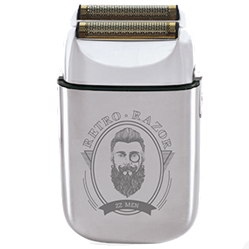 Shaver profesional inalámbrico con sistema de doble cuchilla de acero inoxidable. Pensado para afeitado a cero, perfilado y trabajos de acabado.